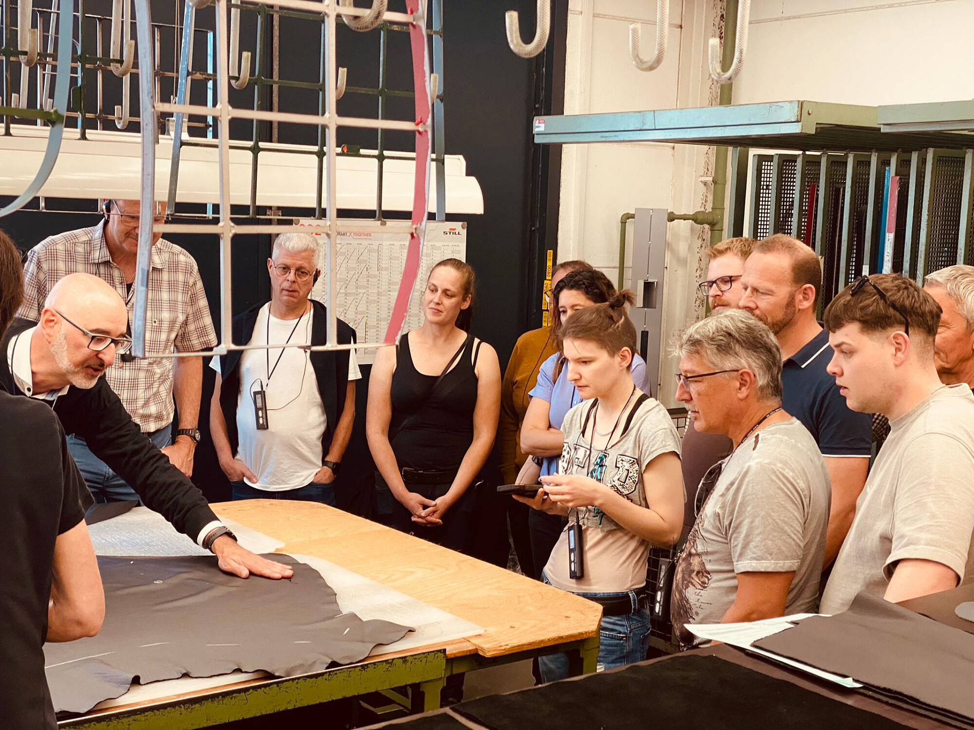 Als Holzverarbeitender Produktionsbetrieb waren wir besonders gespannt, wie ein hochautomatisierter Metallverarbeitungsbetrieb ausschaut - und als Kontrast dazu, eine Manufaktur, die Textile und Leder in feinster Handarbeit zu hochwertigen Sitzmöbeln verarbeitet.